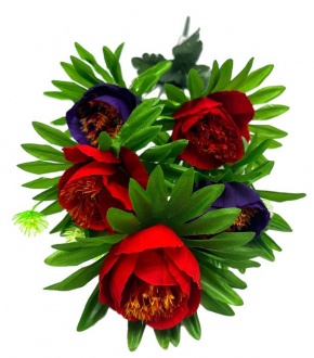 Букет Пион искусственный Двухцв. 5гол. 50см красн+син. 24-5-1 (вып.по…