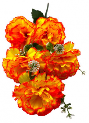 Букет Гвоздика искусственная+зелень Двухцв. 5гол. 51см белый+желт/оранж.…