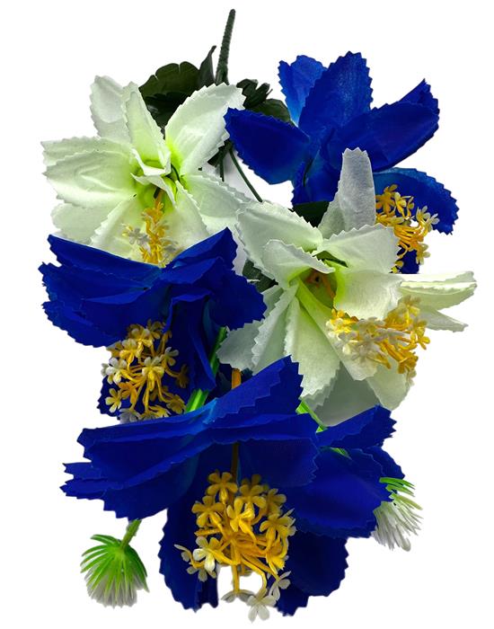Букет Лилейник искусственный Двухцв.5гол. 48см бел+син. 24-5-4 (вып.по 4шт)
