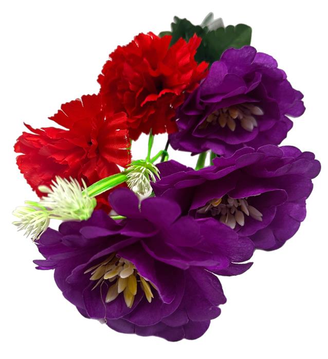 Букет МИКС искусств.5гол. 51см Роза фиолет+Гвоздика красн. (мин.4шт) 24-5-11