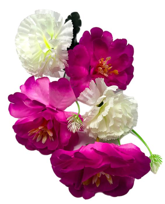 Букет МИКС искусств.5гол. 51см Роза лиловая+Гвоздика белая (мин.4шт) 24-5-11