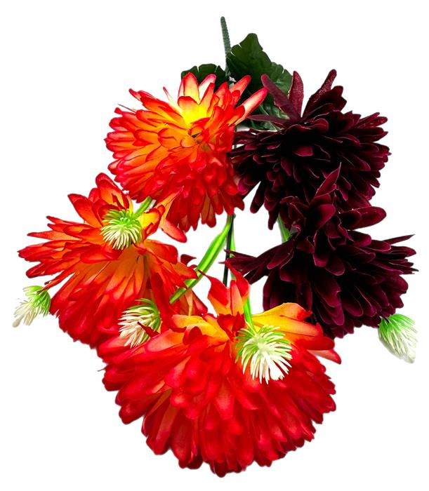 Букет Хризантема искусственная Двухцв. 5гол. 49см бордо+коралл. 24-5-13 (вып.по 2шт)
