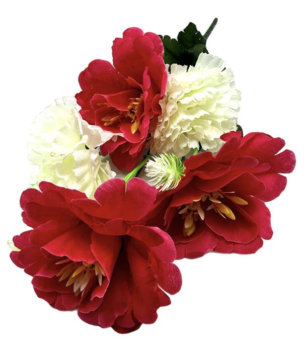 Букет МИКС искусств.5гол. 51см Роза пурпурн.+Гвоздика белая (мин.4шт) 24-5-11