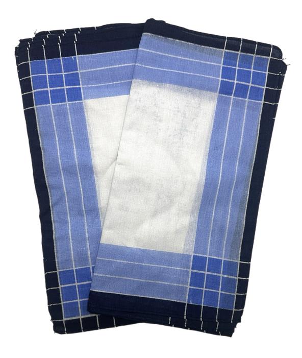 Платок носовой тканевый Мужской 30*30 Белый+голубой с синей каймой (мин.10шт)