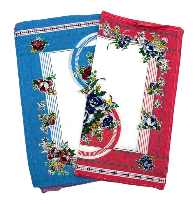 Платок носовой тканевый Женский 28*28 Букет в круге+полоски по краям (мин.10шт)
