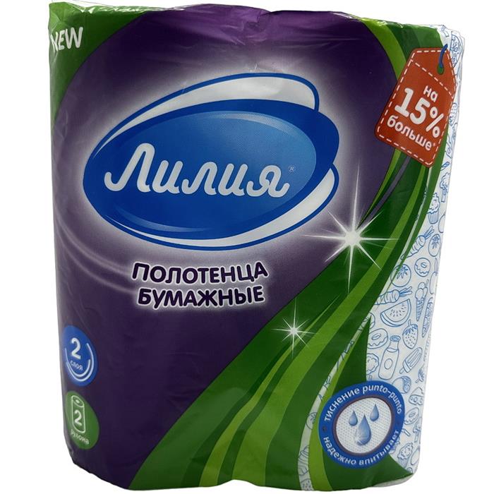 Полотенце бум. ЛИЛИЯ 2 слоя 2шт. Белое АКЦИЯ! СКИДКА 10%