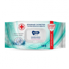 Влажные салфетки Aura Антибактериальные / 15шт. (мин.5шт)