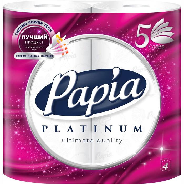 Туалетная бумага PAPIA Platinum 5 слоев 4шт. белая