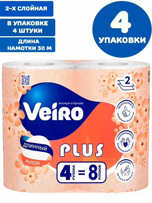 Туалетная бумага VEIRO 2 слоя 4шт. ПЛЮС белая (двойная намотка)