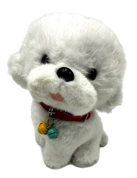 Собачка со стеклянными глазами с ремешком белая с колокольчиком 23см LY-23 АКЦИЯ! СКИДКА 30%