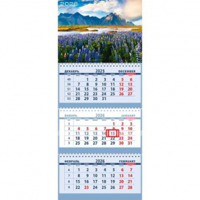 2026 Календарь квартальный ХАТ Офис Озеро в горах 3 блока с бегун. 29,7*75см…
