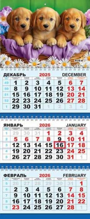 2026 Календарь квартальный ЛИС Собаки. Милое трио 3 блока, с бегун. 19,5*47см…