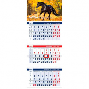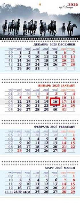 2026 Календарь квартальный ХАТ Офис ГОД ЛОШАДИ 3 блока с бегун. 29,7*75см…