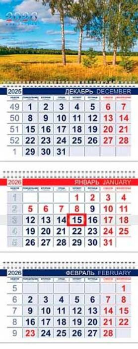 2026 Календарь квартальный ХАТ Офис Родные просторы 3 блока с бегун.…