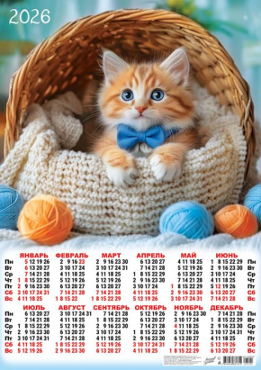 2026 Календарь настенный листовой А2 ЛИС Кошки. Рыжий джентельмен ПО-26-101…