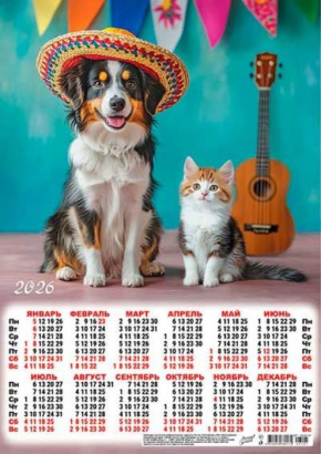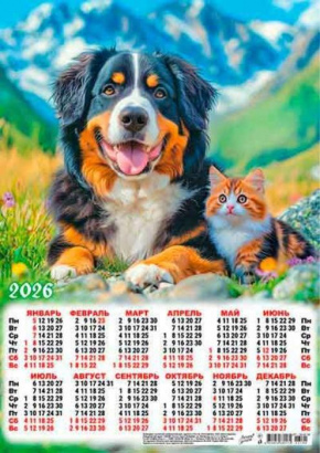 2026 Календарь настенный листовой А3 ЛИС Кот и пёс. Защитник ПМ-26-100…