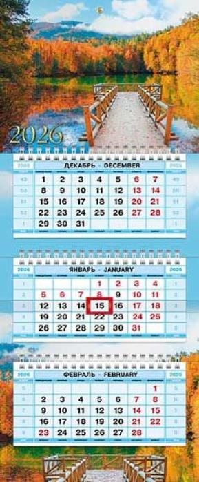 2026 Календарь квартальный ХАТ Люкс Горное озеро 3 блока, с бегун. 29,7*75,8см…