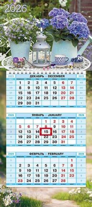 2026 Календарь квартальный ХАТ Мини-1 Уютный сад 3 блока, с бегун.19,5*44см 34435