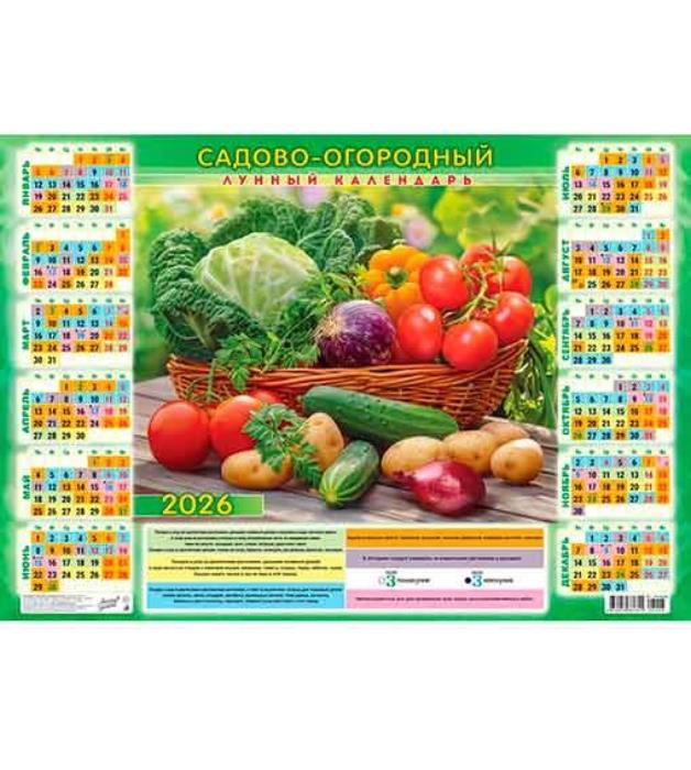 2026 Календарь настенный листовой А2 ЛИС Сад.-огор.,лунн. Богатый урожай ПО-26-203 (вып. по 10шт.)