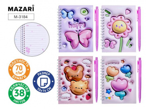 Блокнот подарочный Mazari гребень CUTE 10*14см обложка 3D 38листов, линейка,ручка…