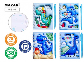Блокнот подарочный Mazari гребень ДИНО 10*14см обложка 3D 38листов, линейка,ручка…