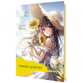 Блокнот на скрепке карт.обложка 17*12см 32листа Аниме Девочка с подсолнухами…