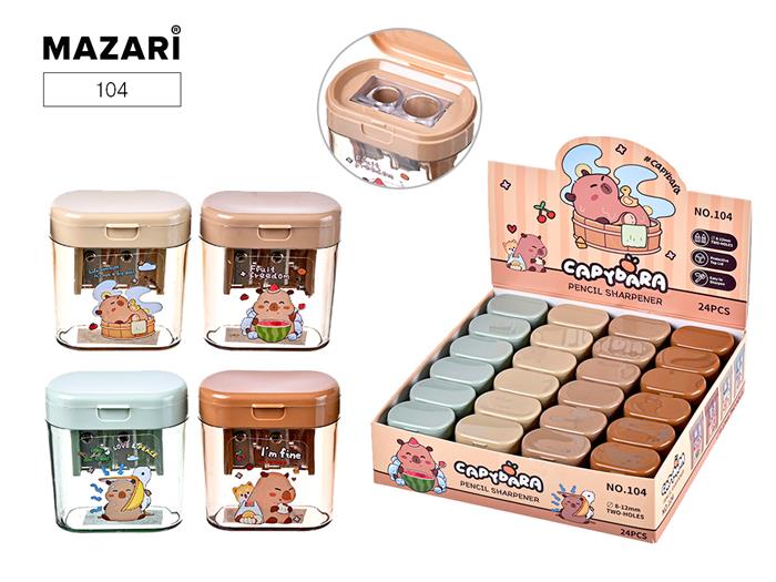 Точилка двойная Mazari Капибара пласт. 4цвета 104