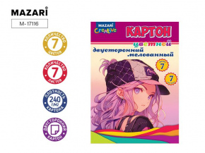 Картон цветной 7л. 7цв. А4 Mazari мелованный двухсторон. М-17117