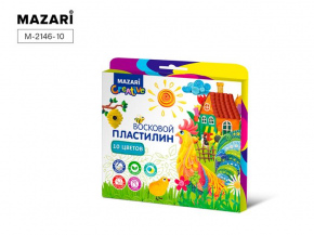 Пластилин восковой 10цв. Mazari 150г со стеком М-2146-10