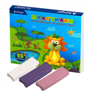Пластилин 12цв. Alingar 180г Лев без стека AL12097