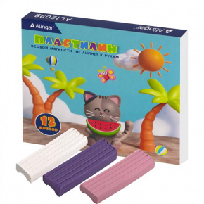Пластилин 12цв. Alingar 180г Кот без стека AL8355