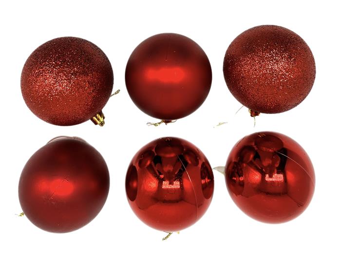 Елочное украшение Шар (пластик) 6см 6шт (2матов+2глянц+2блест) Красный 9185-1