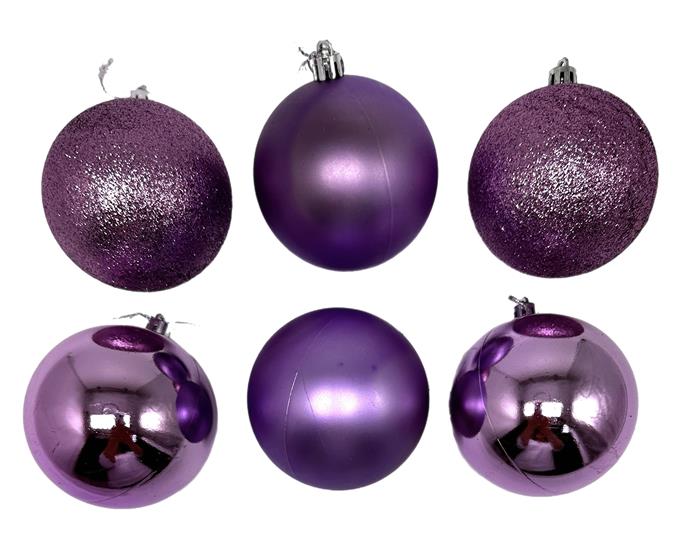 Елочное украшение Шар (пластик) 6см 6шт (2матов+2глянц+2блест) Сиреневый 9185-1