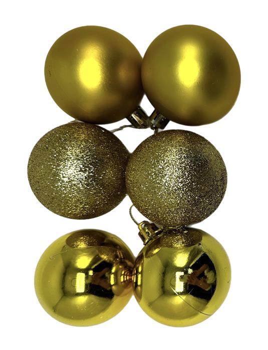 Елочное украшение Шар (пластик) 6см 6шт (2матов+2глянц+2блест) Золото 9185-1
