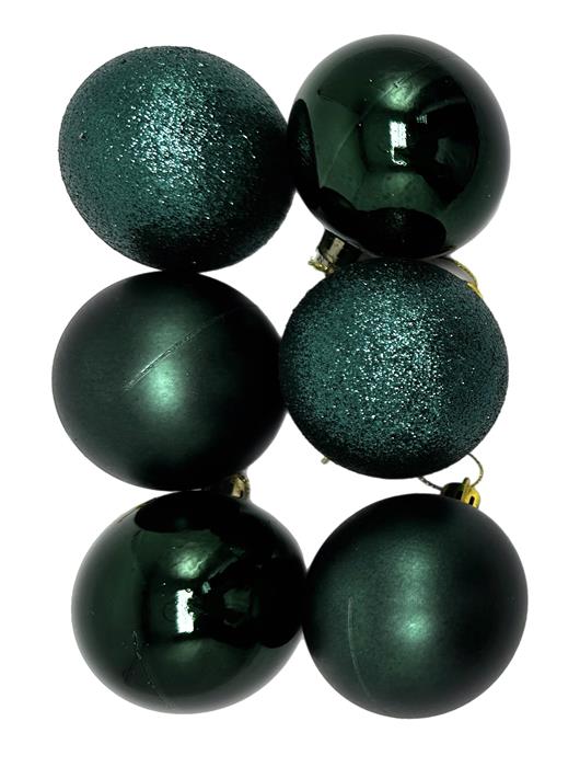 Елочное украшение Шар (пластик) 8см 6шт (2матов+2глянц+2блест) Изумруд 9185-2
