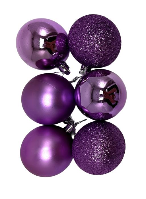 Елочное украшение Шар (пластик) 8см 6шт (2матов+2глянц+2блест) Сиреневый 9185-2