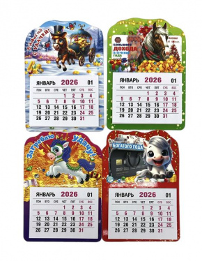 Календарь-МАГНИТ 2026 Год лошади в ассорт.5*5см (отрывной) P-13 (мин.2шт)