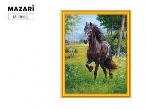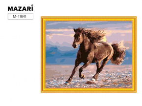 Алмазная мозаика 2в1 и раскраш. по номерам 40*50см Черный конь М-11663