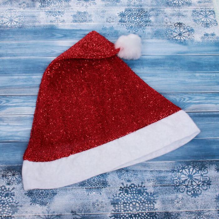 Колпак Деда Мороза "Мерцание" красный, двухслойный 28*38см 779-006