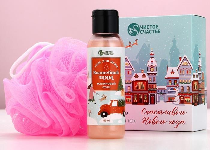 Косметика Набор Новогодний Счастливого Нового года (гель-душ 100мл+мочалка)
