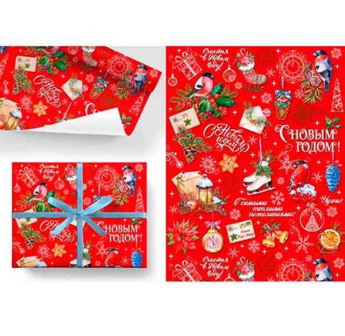 ,НГ Бумага упаковочная 100*70 Микрос "Снегири" (1лист) Ч44666_1
