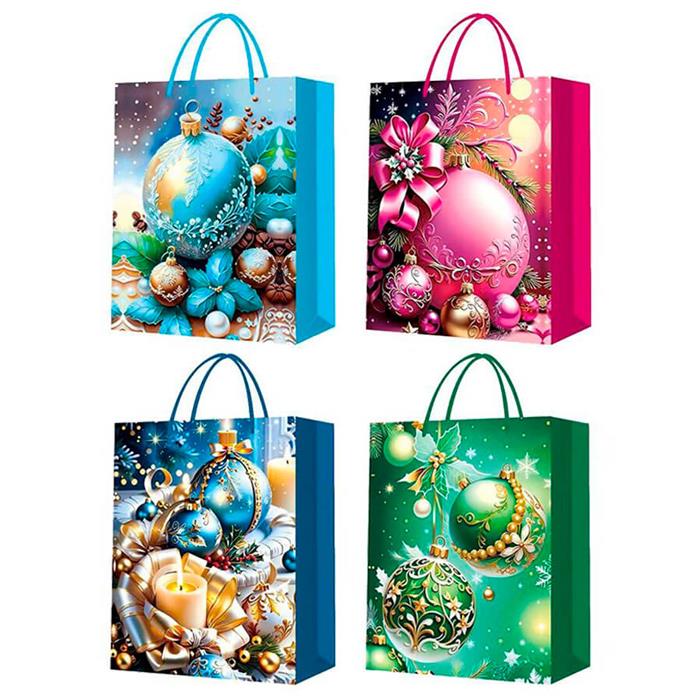 .НГ Пакет "Сумочка" п/подарок 32*26*10см ШАРЫ 4дизайна (выпис. по 12шт.) М-8262