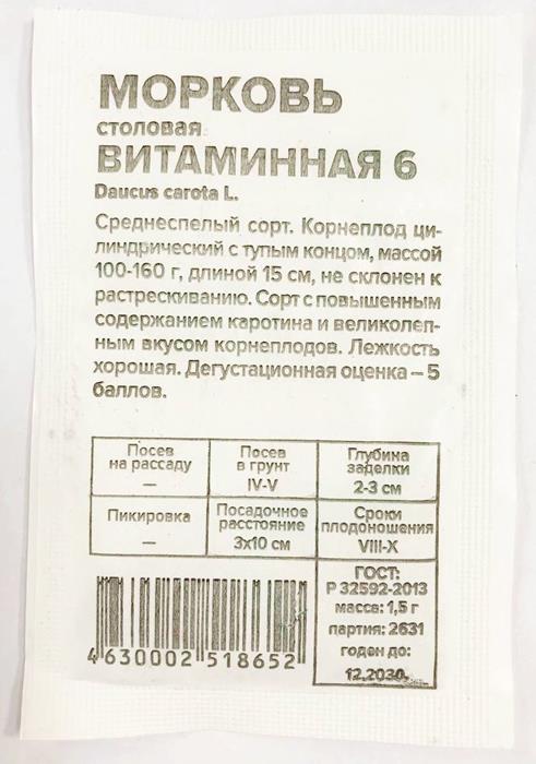 Морковь Витаминная 6 (1,5г БП) Сем Алт (мин.10шт.)