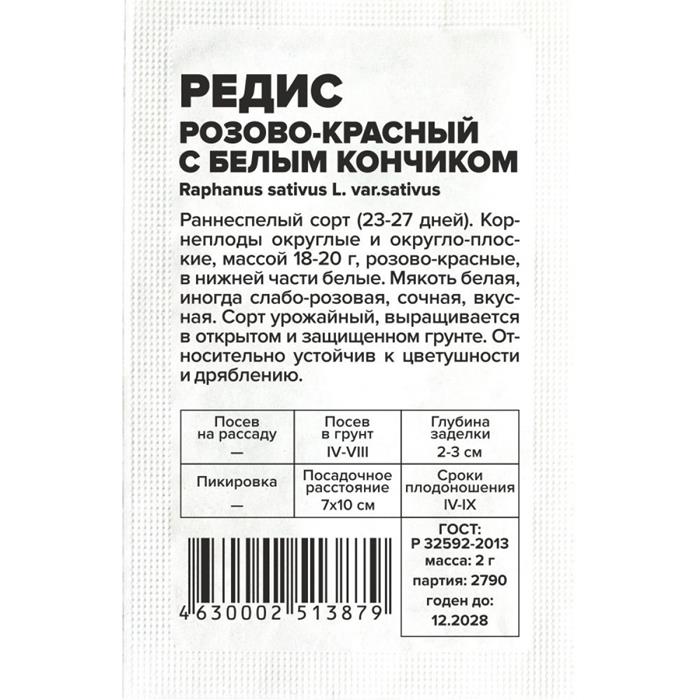 Редис Розово-красный с бел.кончиком (2г БП) Сем Алт (мин.5шт.)