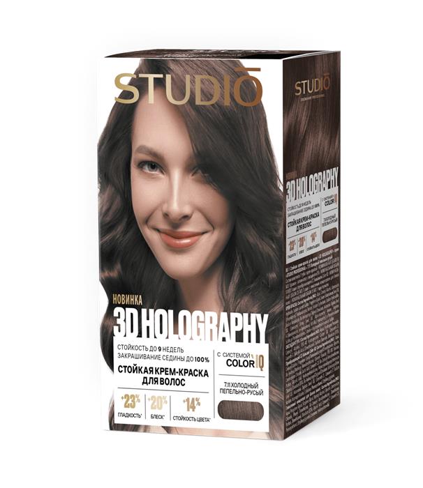 STUDIO 3D Голографик 2025 Крем-краска 7.11 холодн.пепельно-русый НОВЫЙ ДИЗАЙН