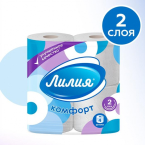 Туалетная бумага ЛИЛИЯ Комфорт 2 слоя 4шт. Белая