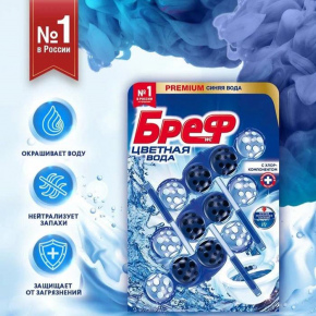 БРЕФ Освежитель д/унитаза Тройные Сила Актив Цветная вода Хлор-компонент…