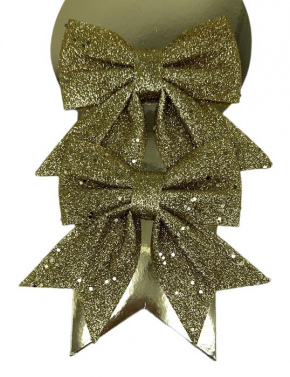 Елочное украшение Бант блестящий 12см в наборе/2шт Золото 495012
