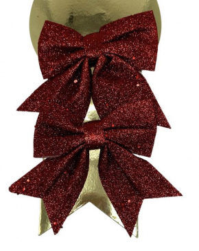 Елочное украшение Бант блестящий 12см в наборе/2шт Красный 495012