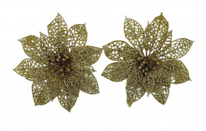 Елочное украшение Цветок ажурный 15см в наборе/2шт. Золото 109-25139